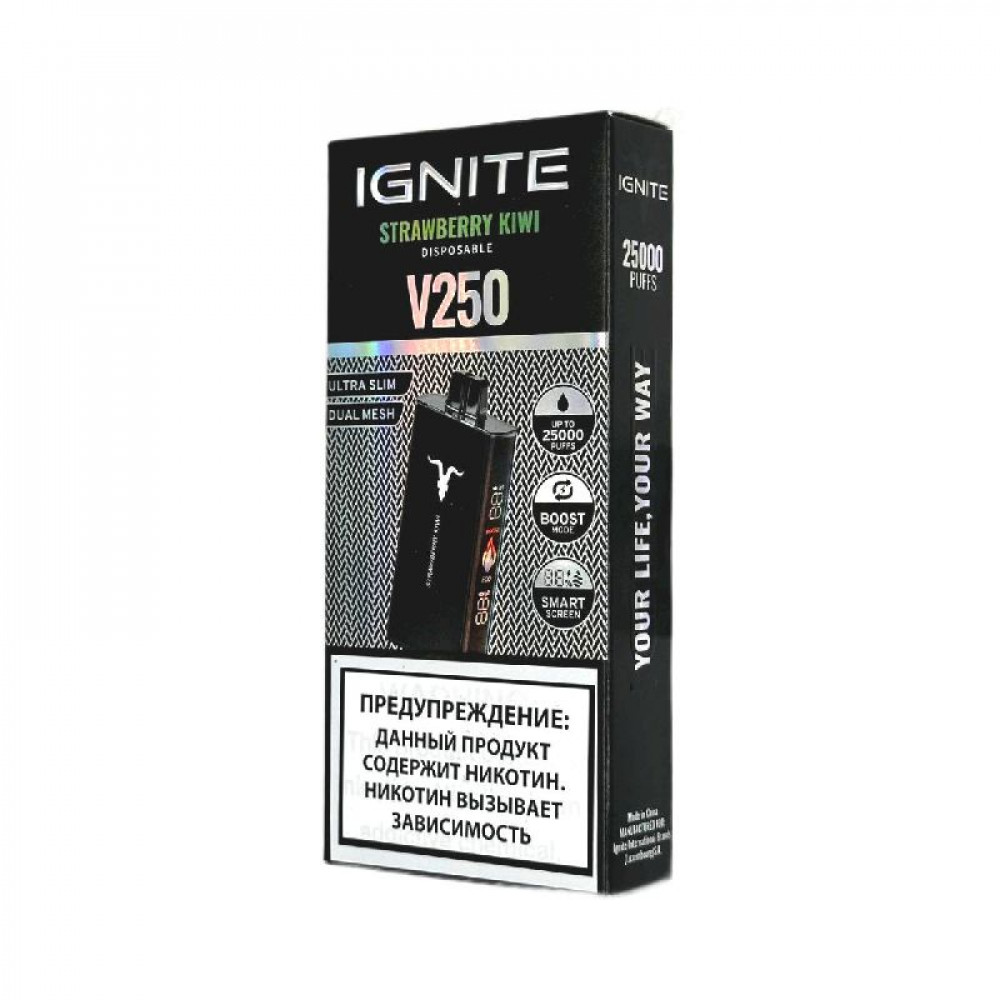 Электронная сигарета Ignite V250 Black 25000 - Strawberry Kiwi (Клубника киви) - купить в Мценске
